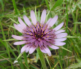 Purple salsify (Tragopogon porrifolius), also known as oyster-plant, vegetable oyster, and winter asparagus, is an edible root vegetable and a lovely decorative biennial. Glaucous, grass like-foliage is topped by large purple daisy flowers in the summer of its second year. The flowers give way to lovely, over-sized dandelion-like seedheads.